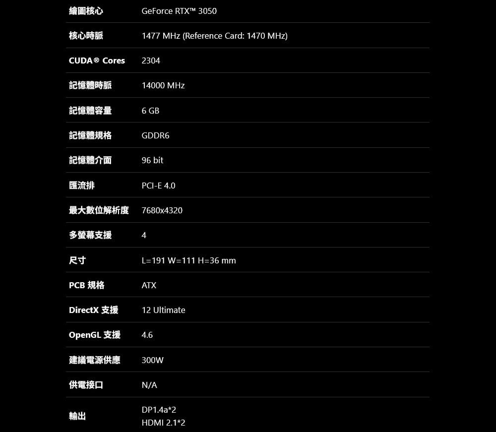- 內建 6GB GDDR6 96位元記憶體