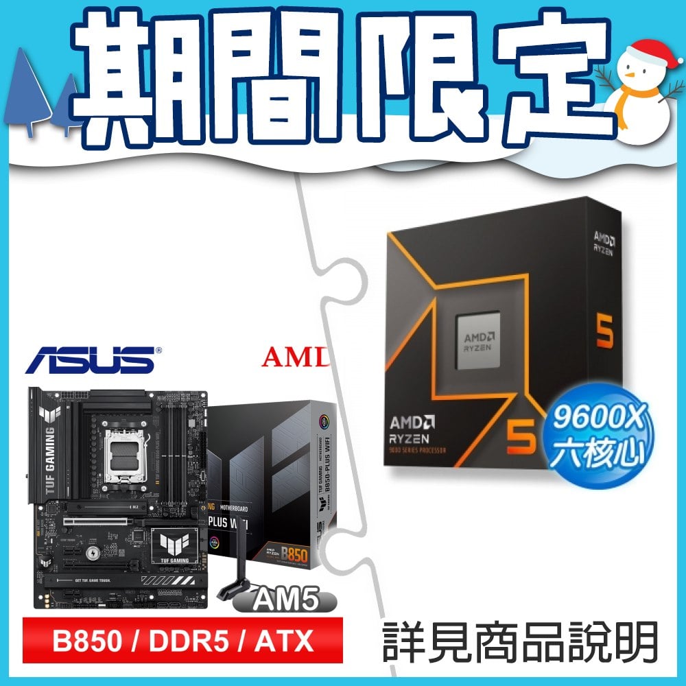 ☆期間限定★ AMD R5 9600X+華碩 TUF GAMING B850-PLUS WIFI ATX主機板 ★送美光 Crucial P310 1TB M.2 SSD BULK+PC-cillin 2025 雲端版 一年一台 隨機版