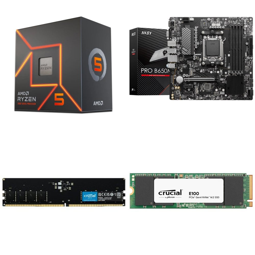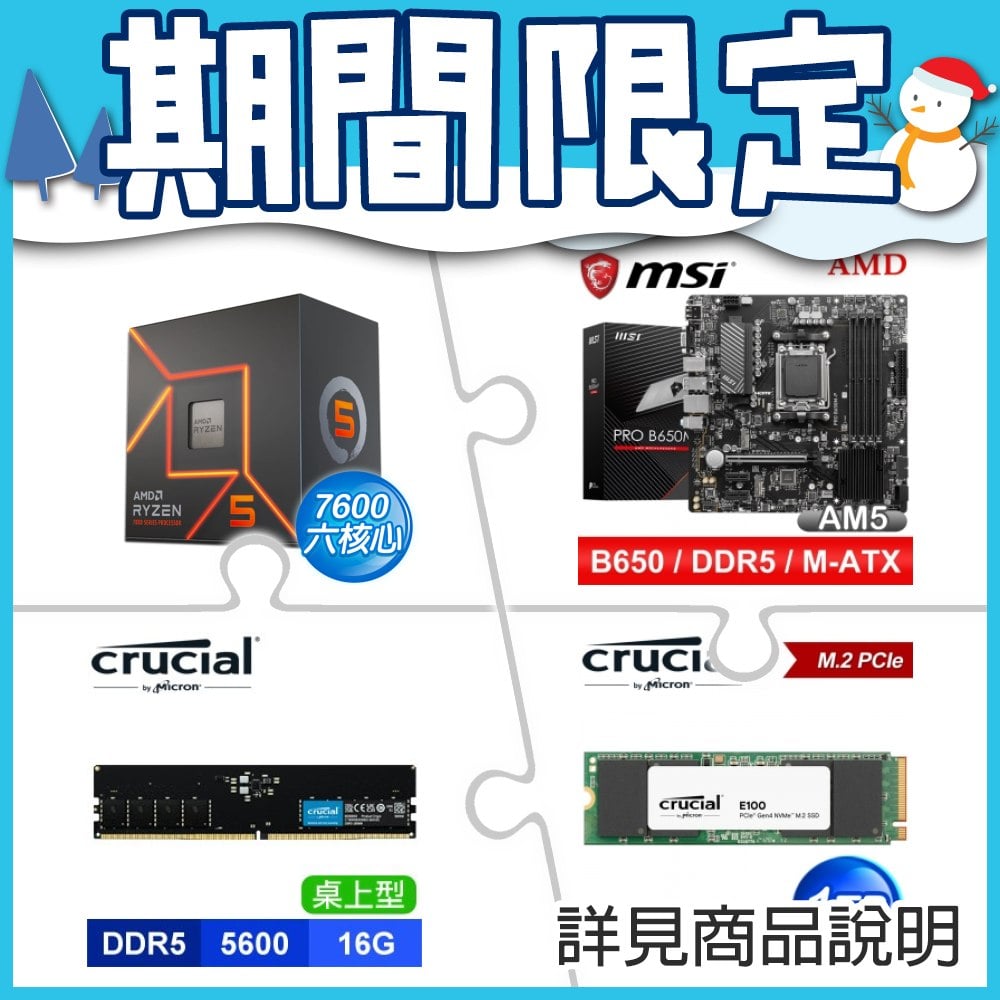 ☆期間限定★ AMD R5 7600+微星 PRO B650M-P M-ATX主機板+美光 Crucial DDR5-5600 16G 記憶體+美光 Crucial E100 1TB M.2 PCIe 4.0 SSD ★送PC-cillin 2025 雲端版 一年一台 隨機版