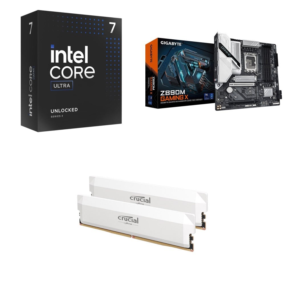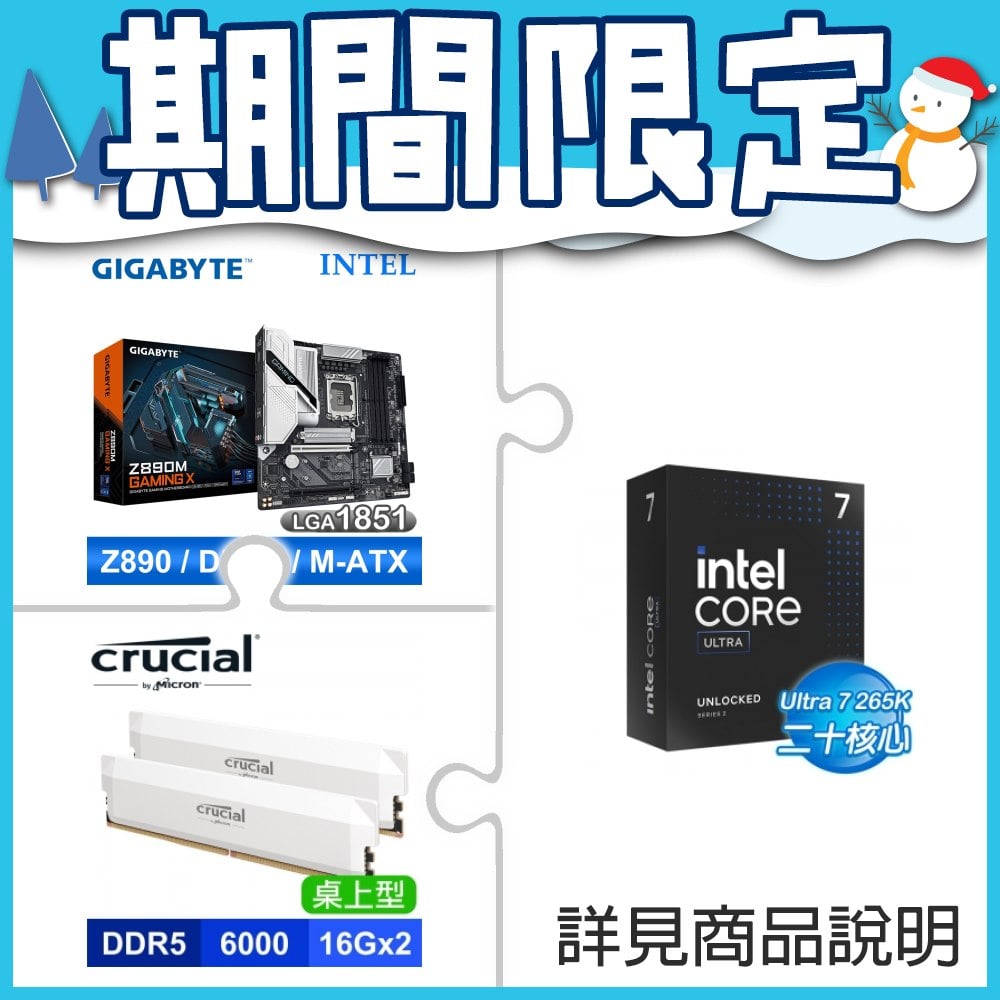 ☆期間限定★ Intel Core Ultra 7 265K+技嘉 Z890M GAMING X D5 ATX主機板+美光 Crucial PRO DDR5 6000/32G (16G*2)白 記憶體