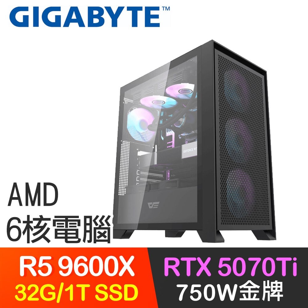 技嘉系列【照世明燈】R5 9600X 6核 RTX5070Ti 電腦主機(16G/1T SSD)