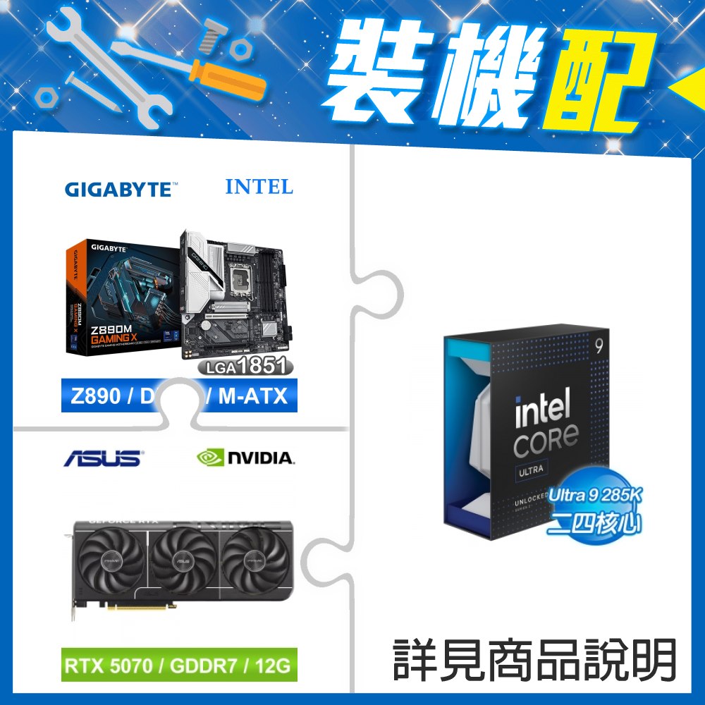 ☆裝機配★ Core U9 285K+技嘉 Z890M GAMING X D5 MATX主機板+華碩 PRIME-RTX5070-O12G 顯示卡