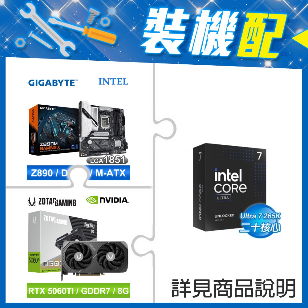 ☆裝機配★ Core U7 265K+技嘉 Z890M GAMING X D5 MATX主機板+索泰 RTX 5060 TI 8GB Twin Edge OC 顯示卡