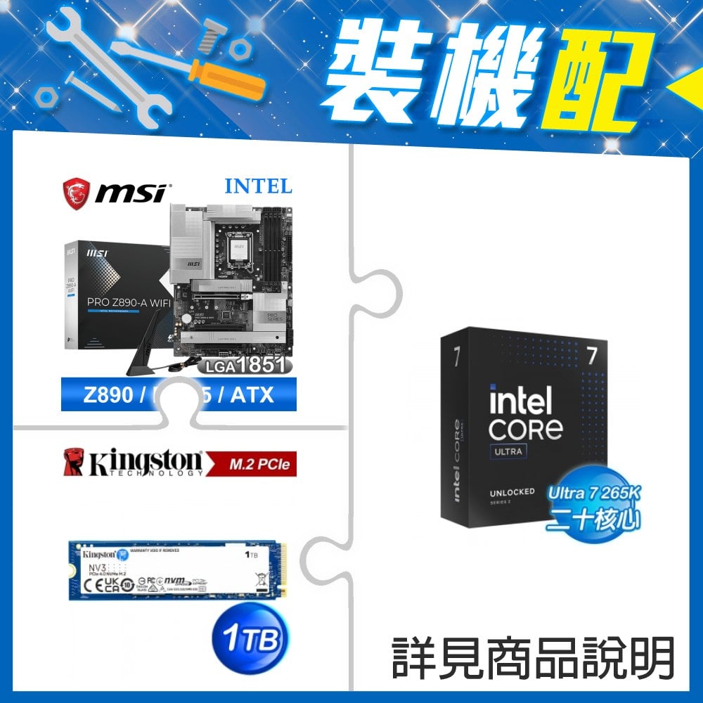 ☆裝機配★ Core U7 265K+微星 PRO Z890-A WIFI D5 ATX主機板+金士頓 NV3 1TB M.2 PCIe SSD