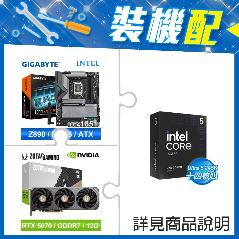 ☆裝機配★ Core U5 245KF+技嘉 Z890 EAGLE WIFI7 D5 ATX主機板+索泰 RTX 5070 SOLID OC 12G 顯示卡