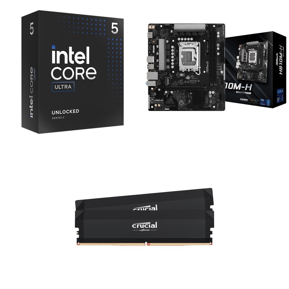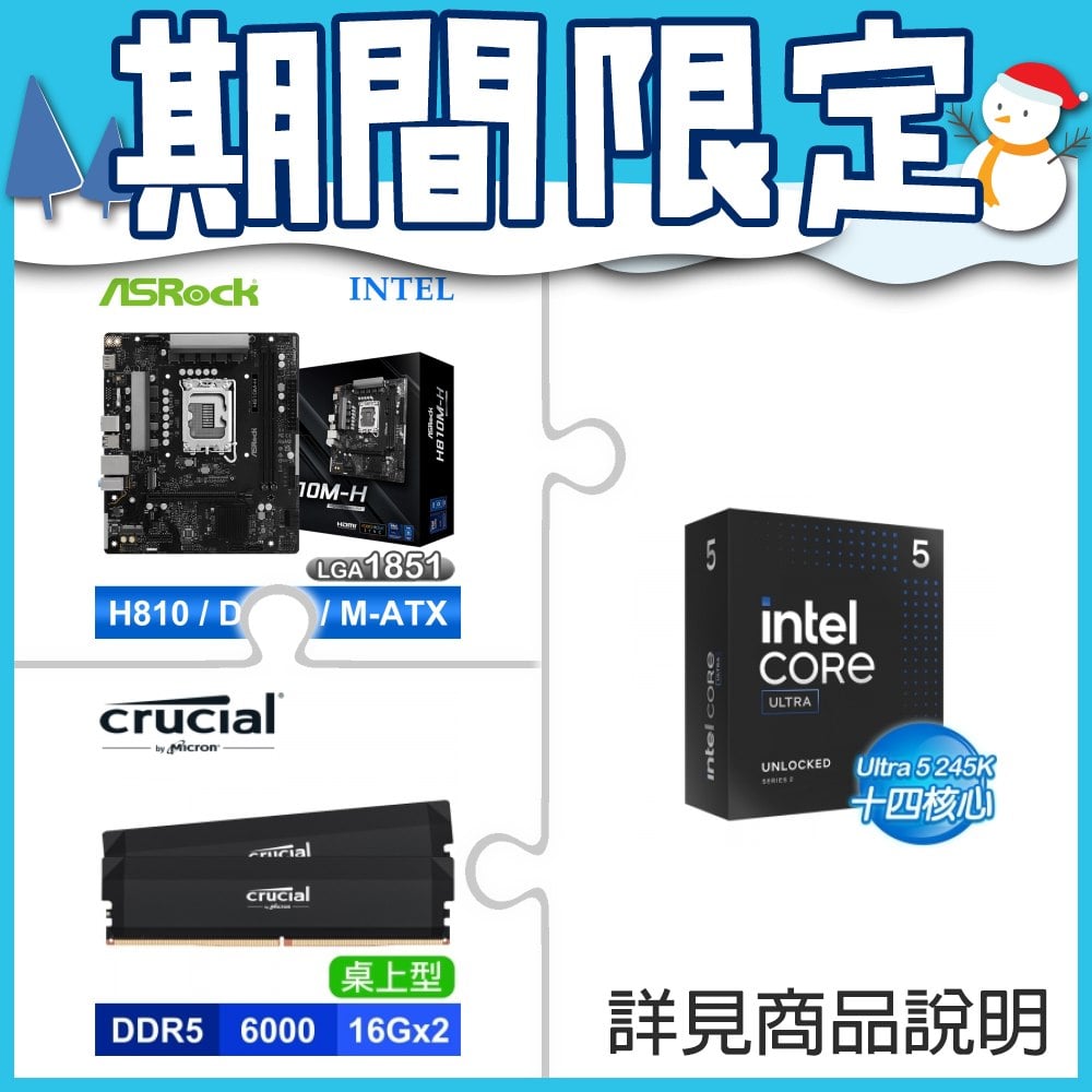 ☆期間限定★ Intel Core Ultra 5 245K+華擎 H810M-H MATX 主機板+美光Crucial PRO DDR5-6000 16G*2黑 記憶體