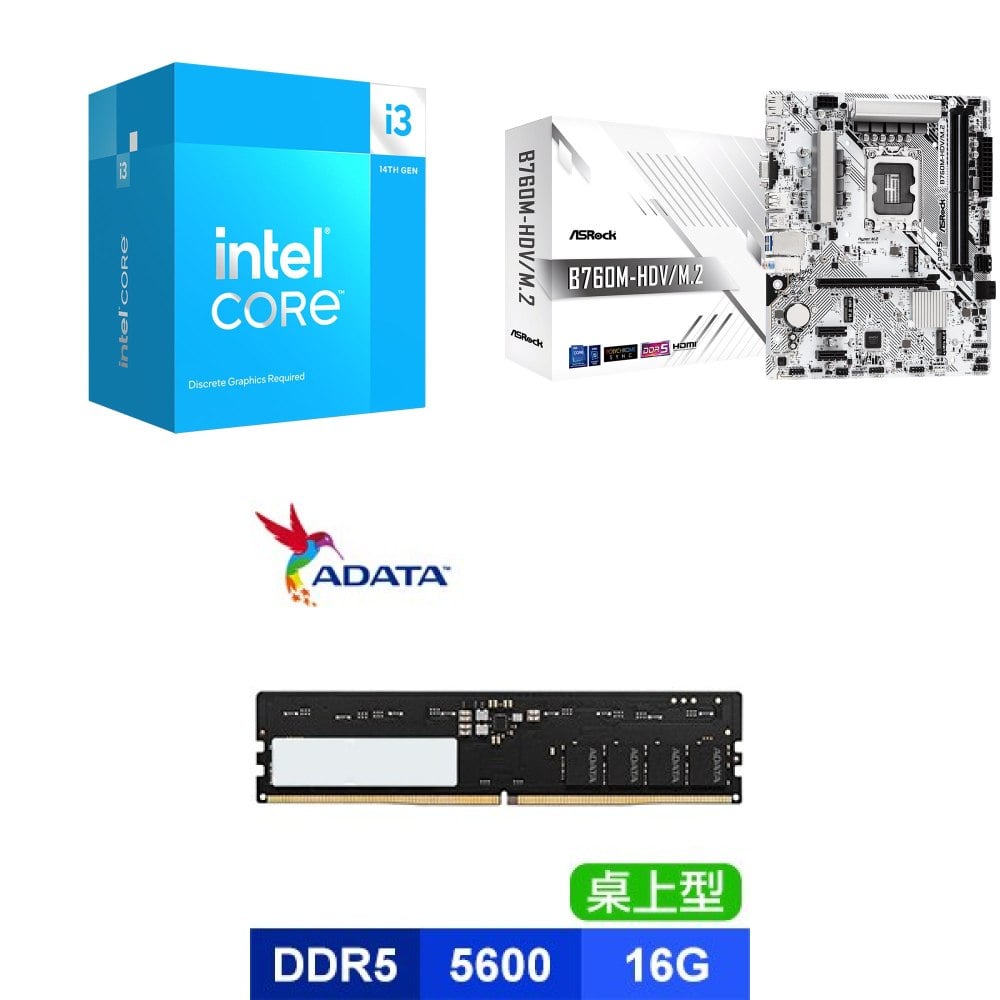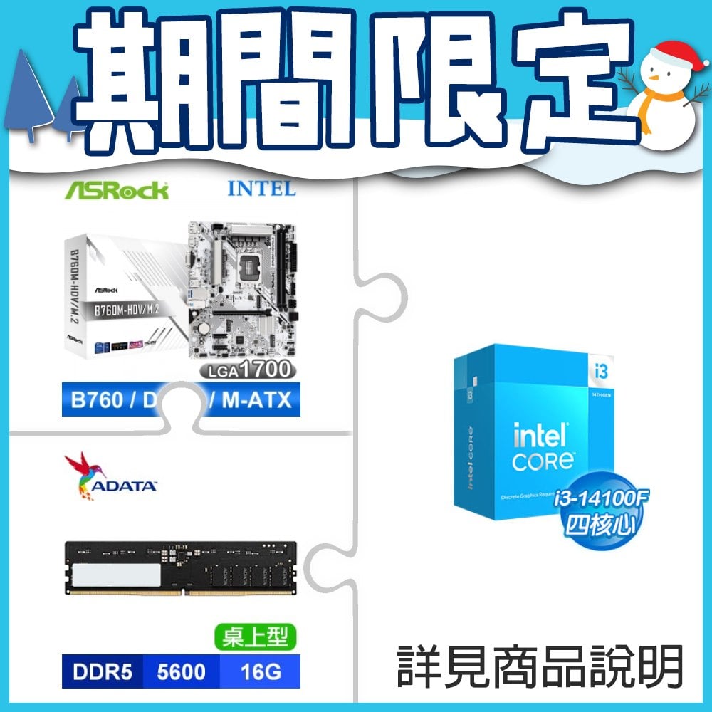 ☆期間限定★ i3-14100F+華擎 B760M-HDV/M.2 D5 M-ATX主機板+威剛 DDR5-5600 16G 記憶體