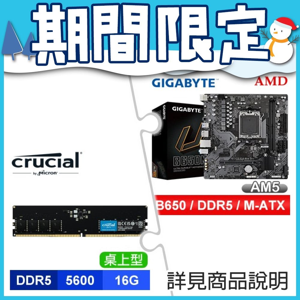 ☆期間限定★ 技嘉 B650M H M-ATX主機板+美光 Crucial DDR5-5600 16G 記憶體