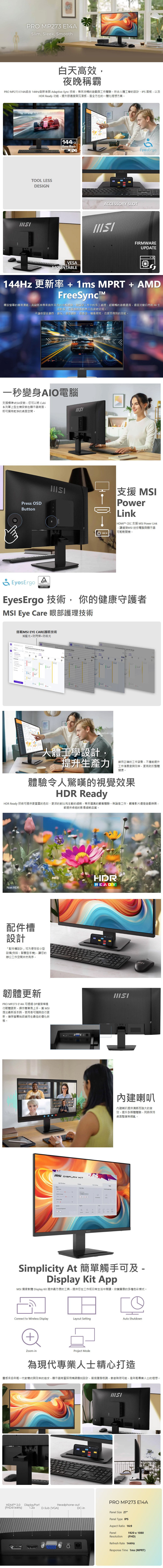 MSI PRO MP273 E14A 27型 IPS螢幕