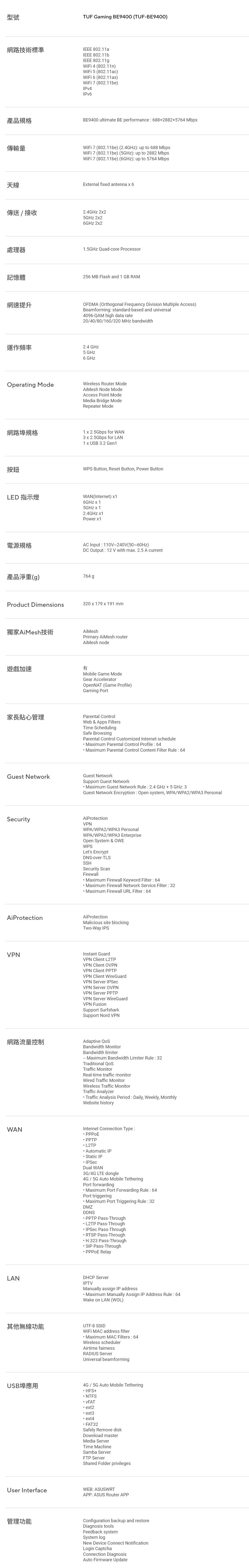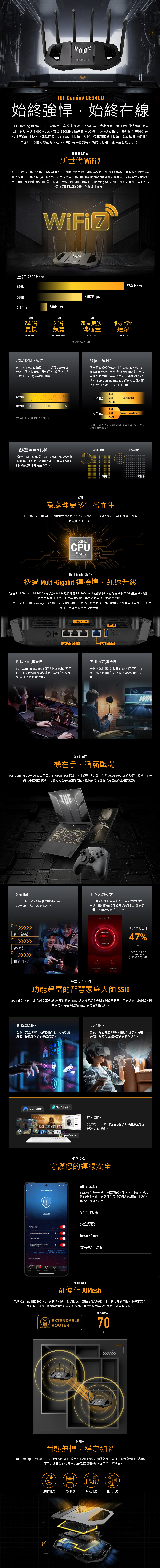 ASUS 華碩 TUF-BE9400 三頻 WiFi 7 電競路由器