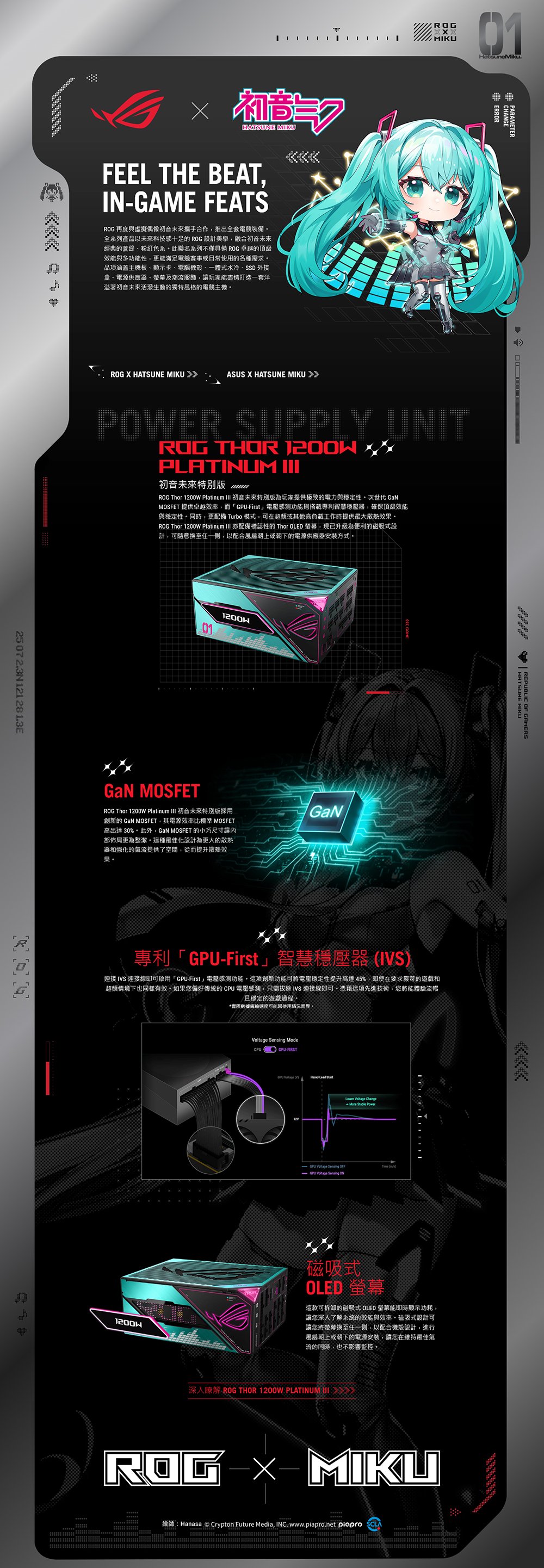 ASUS 華碩 ROG-THOR-1200P3-MIKU 白金 全模組 ATX3.1 PCIe 5.1 電源供應器(10年保)
