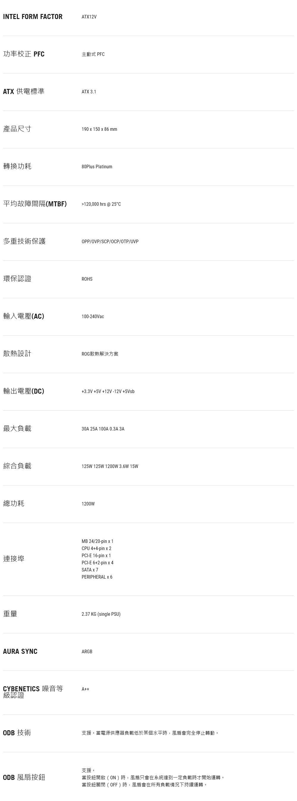 • 相容於 ATX 3.1:ROG Thor 白金版 III 符合 ATX 3.1 標準,可確保為最新硬體增強電壓和電流調節
