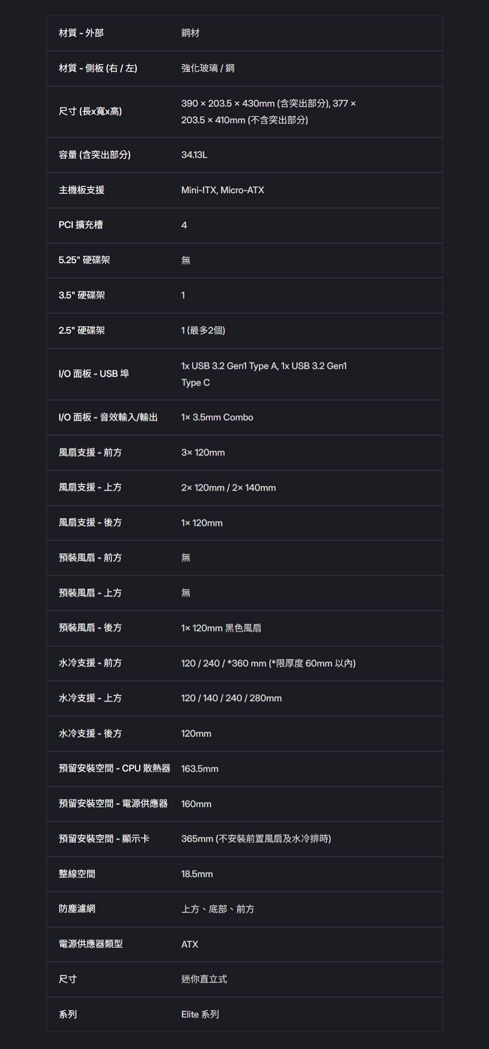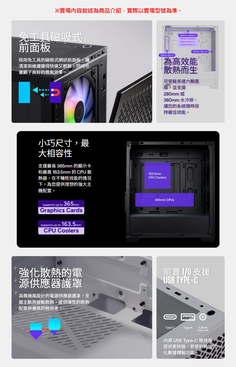 - 支援最長 365mm 的顯示卡和最高 163.5mm 的 CPU 散熱器