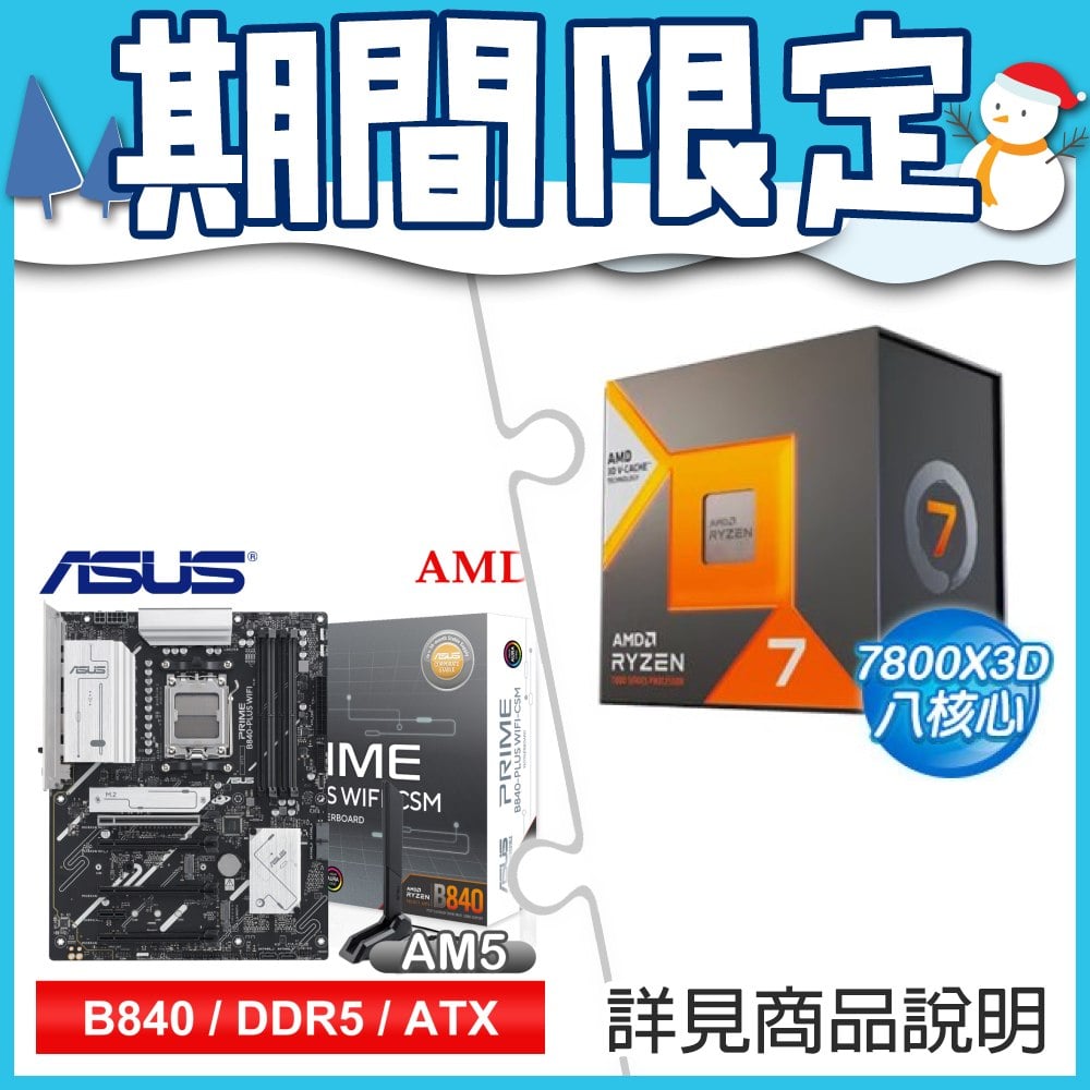 ☆期間限定★ AMD R7 7800X3D+華碩 PRIME B840-PLUS WIFI-CSM ATX主機板
