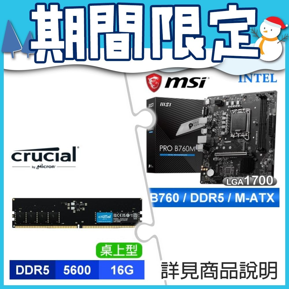 ☆期間限定★ 微星 PRO B760M-E D5 M-ATX主機板+美光 Crucial DDR5-5600 16G 記憶體