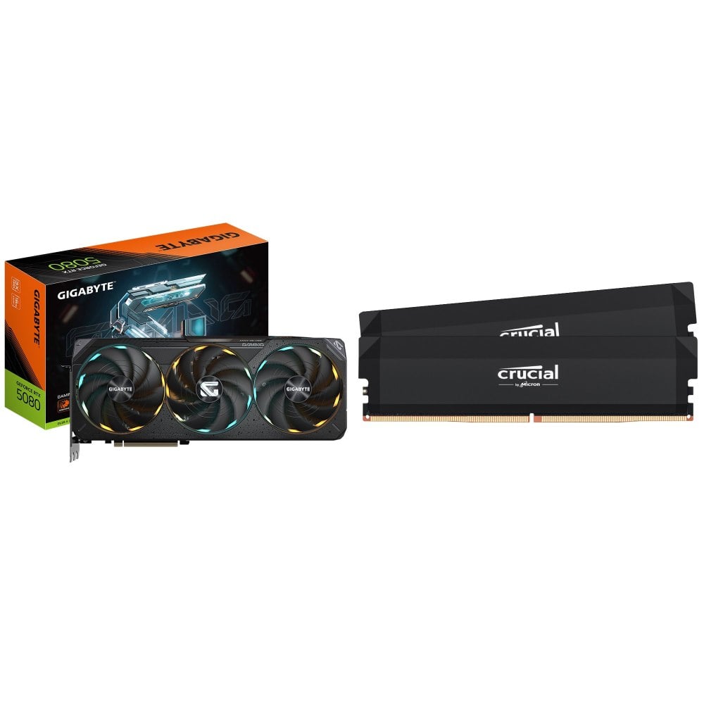 ☆期間限定★ 技嘉 RTX 5080 GAMING OC 16G 顯示卡+美光Crucial PRO DDR5-6000 16G*2黑 記憶體