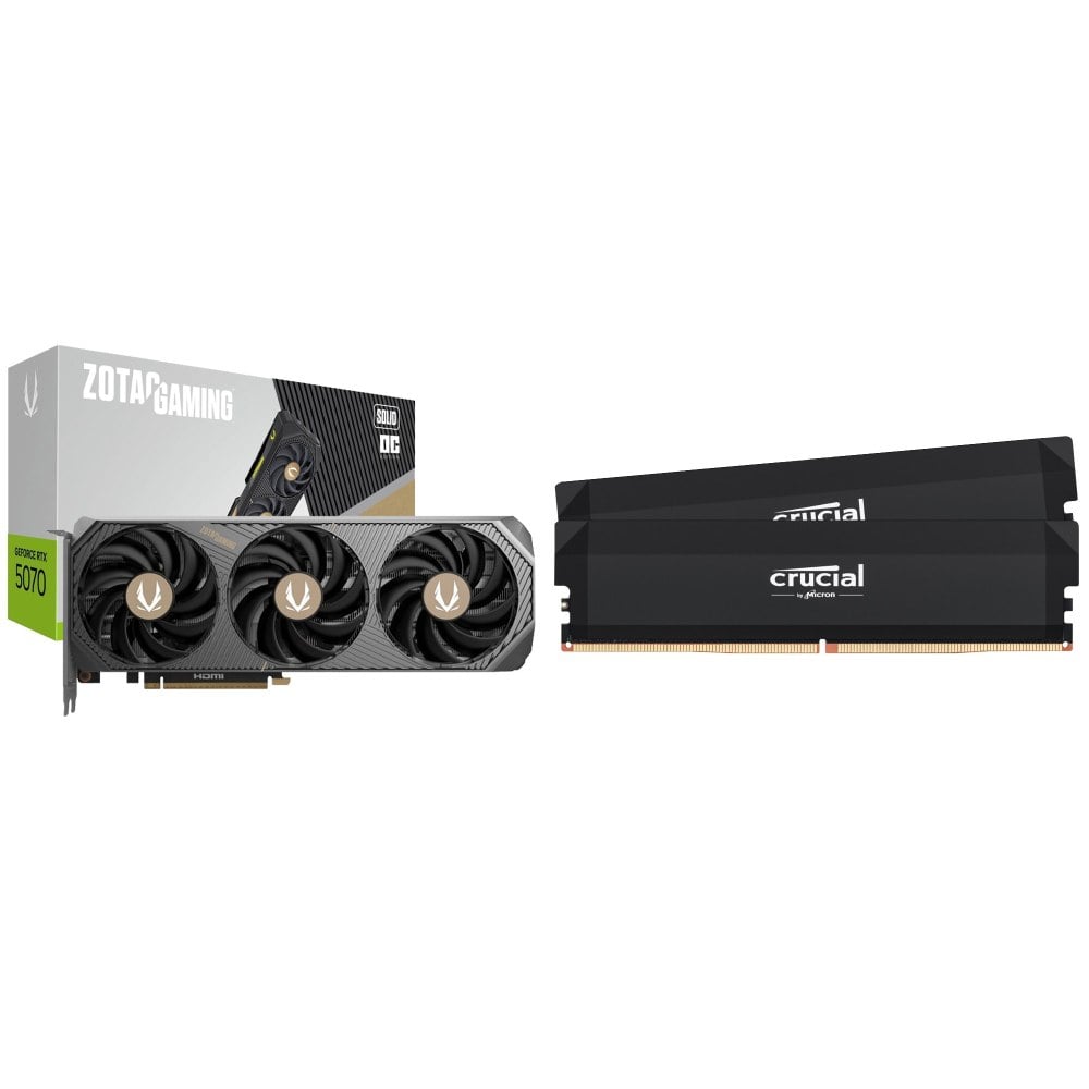 ☆期間限定★ 索泰 RTX 5070 SOLID OC 12G 顯示卡+美光Crucial PRO DDR5-6000 16G*2黑 記憶體