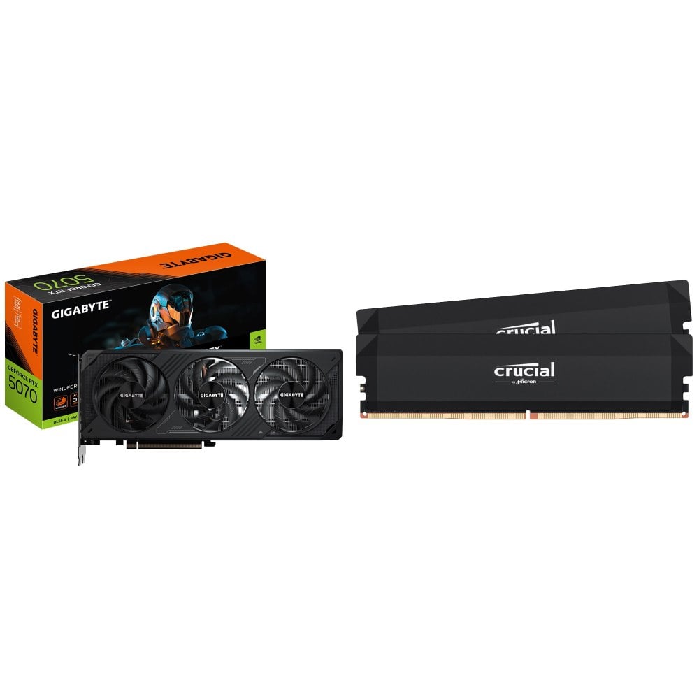 ☆期間限定★ 技嘉 RTX 5070 WINDFORCE OC SFF 12G 顯示卡+美光Crucial PRO DDR5-6000 16G*2黑 記憶體
