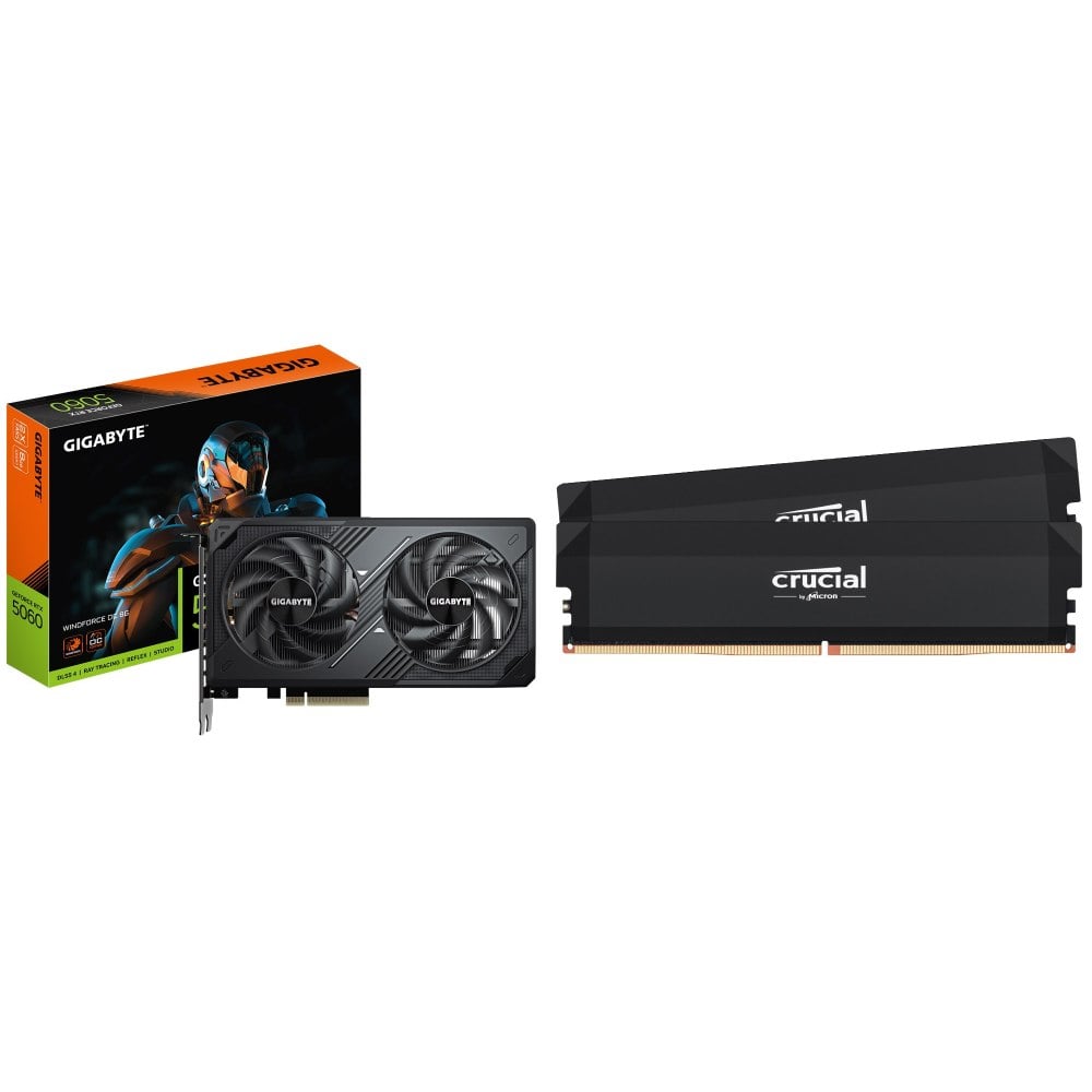 ☆期間限定★ 技嘉 RTX 5060 WINDFORCE OC 8G 顯示卡+美光Crucial PRO DDR5-6000 16G*2黑 記憶體