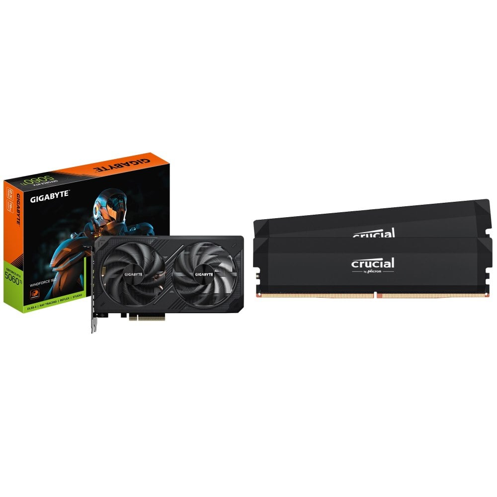 ☆期間限定★ 技嘉 RTX 5060 Ti WINDFORCE 16G 顯示卡+美光Crucial PRO DDR5-6000 16G*2黑 記憶體