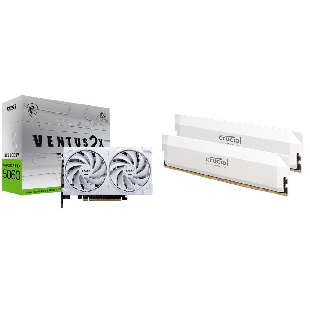 ☆期間限定★ 微星 RTX 5060 8G VENTUS 2X OC WHITE 顯示卡+美光Crucial PRO DDR5 6000 16G*2 白 記憶體