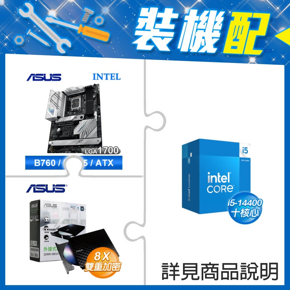☆裝機配★ i5-14400F+華碩 ROG STRIX B760-A GAMING WIFI D5 ATX主機板+華碩 SDRW-08D2S-U 外接式燒錄機《黑》