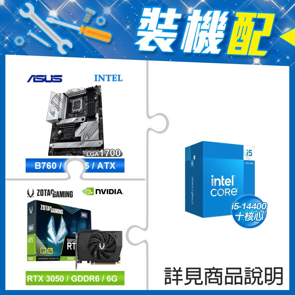☆裝機配★ i5-14400F+華碩 ROG STRIX B760-A GAMING WIFI D5 ATX主機板+ZOTAC RTX3050 6G GDDR6 Solo 顯示卡