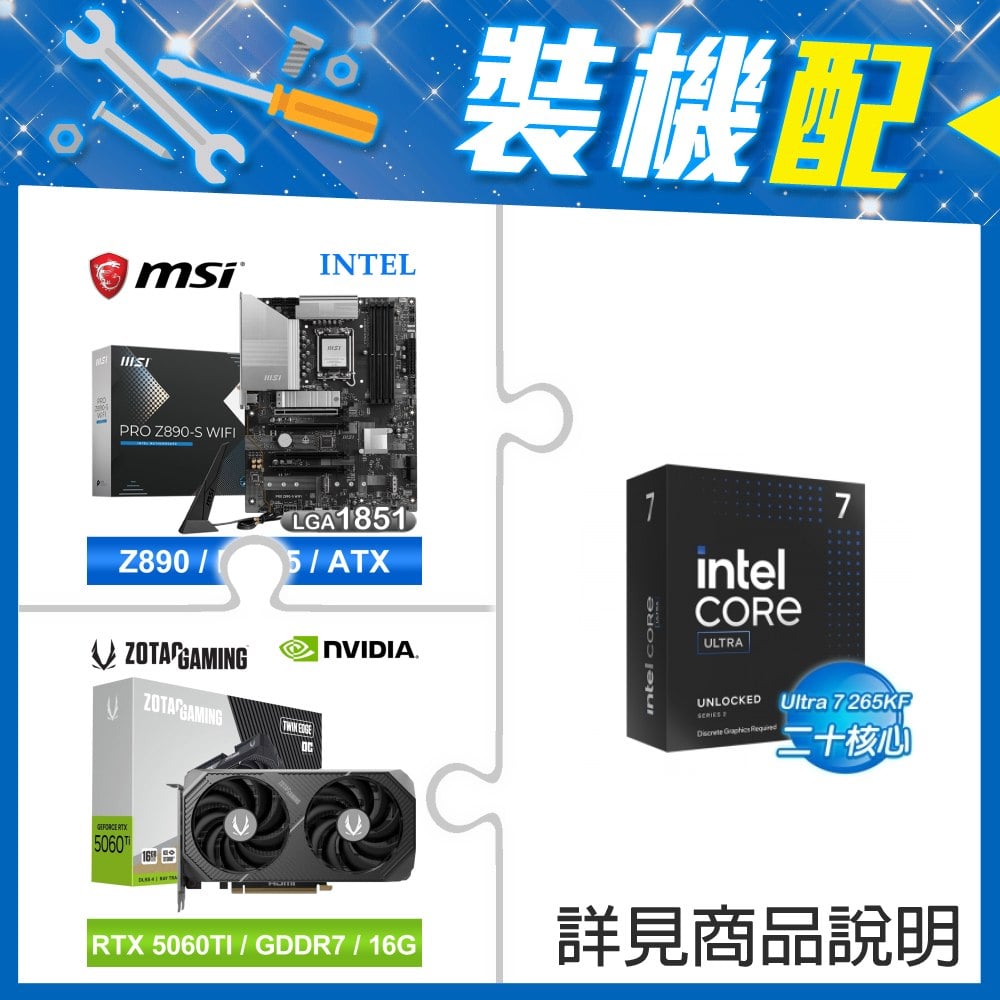 ☆裝機配★ Core U7 265KF+微星 PRO Z890-S WIFI D5 ATX主機板+索泰 RTX 5060 TI 16GB Twin Edge OC 顯示卡