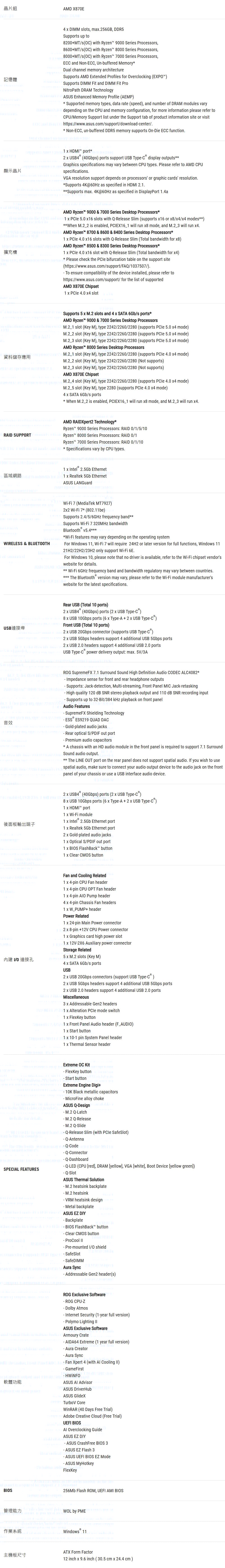 - AMD AM5 Socket:適用於 AMD Ryzen™ 9000、8000 和 7000 系列桌上型處理器