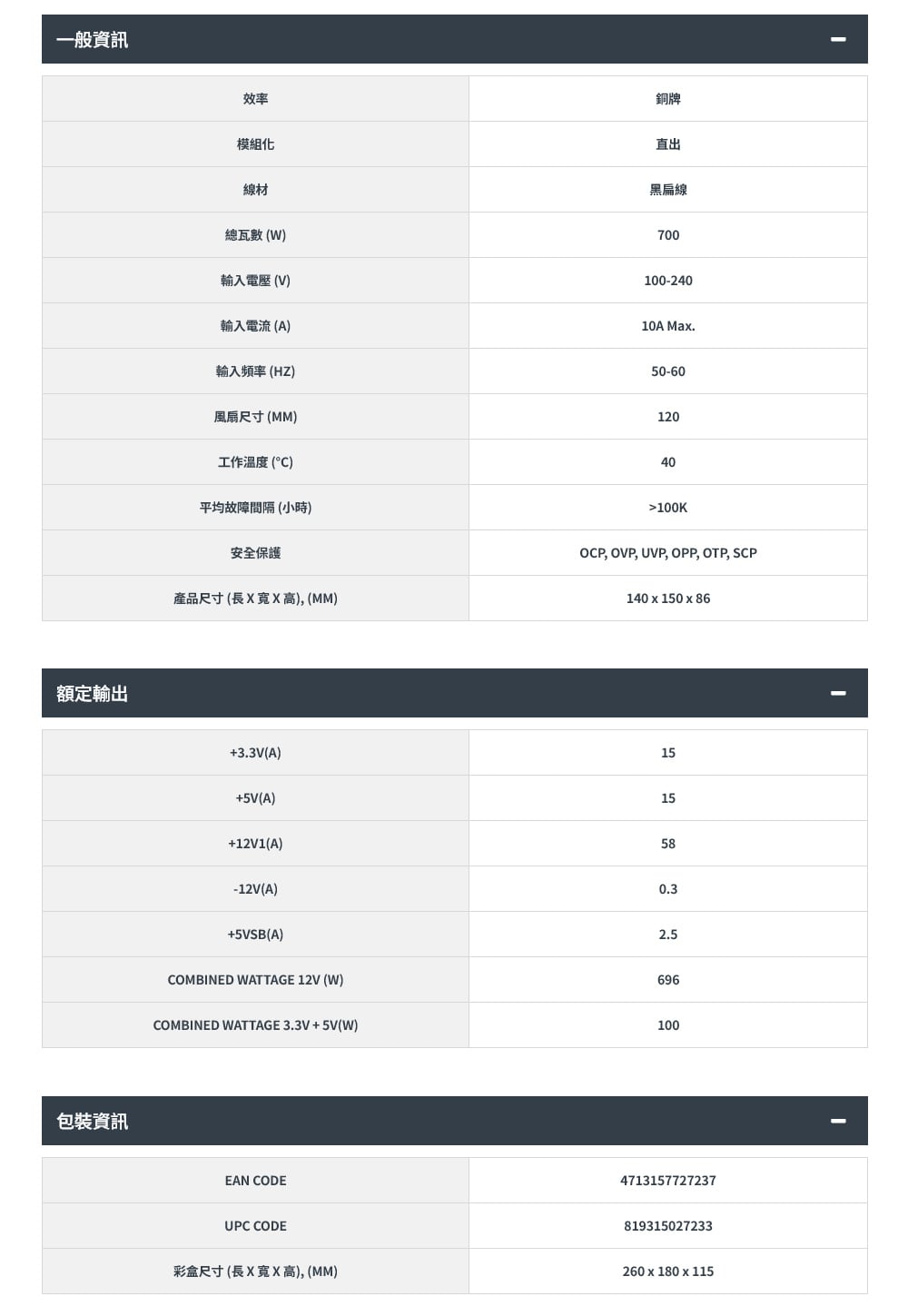 - 多重安全線路設計,OCP, OVP, SCP, OPP, UVP, OTP