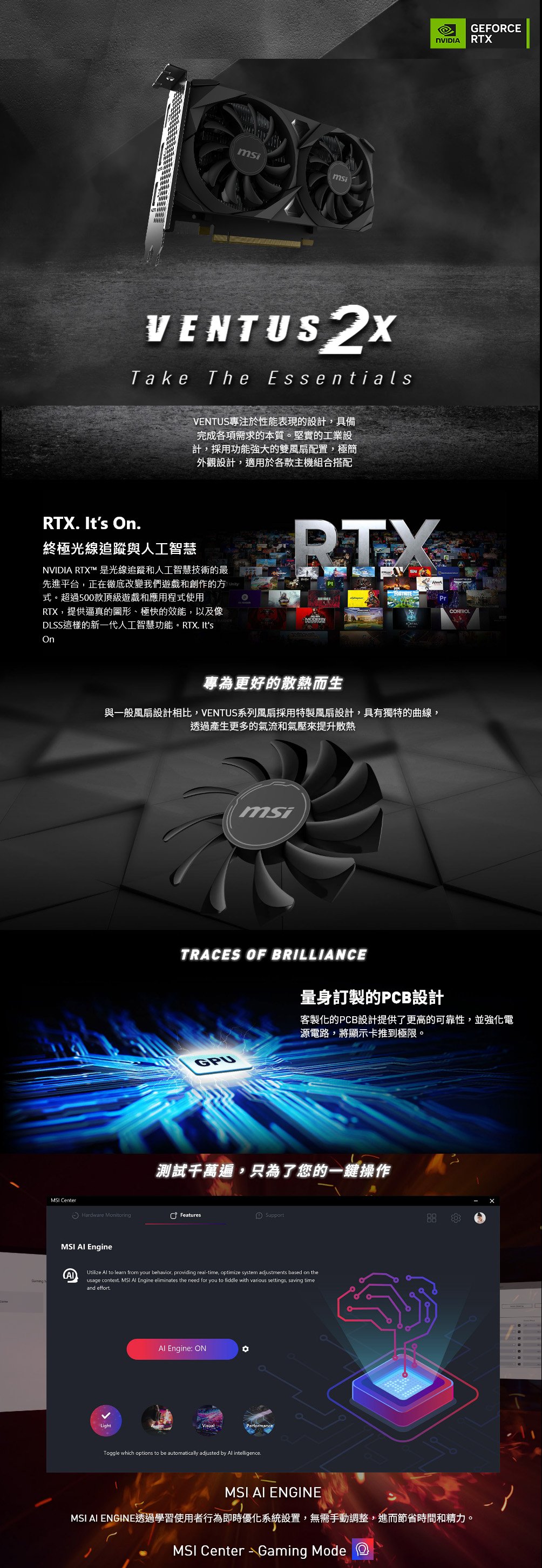 MSI 微星 RTX 3060 VENTUS 2X 12G OC 顯示卡(1807MHz/23.5cm/雙風扇/註冊四年保)