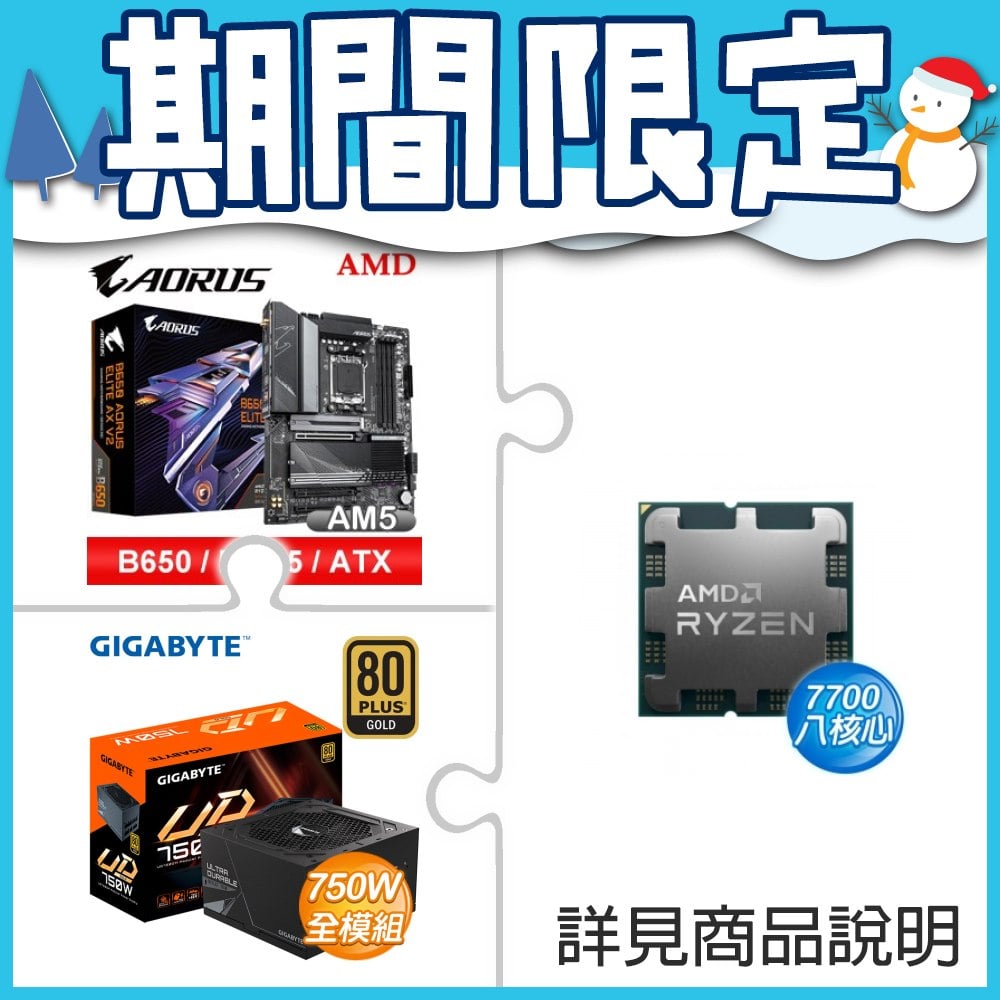 ☆期間限定★ AMD R7 7700 MPK+技嘉 B650 AORUS ELITE AX V2 D5 ATX主機板+技嘉 UD750GM 金牌 全模組 電源供應器