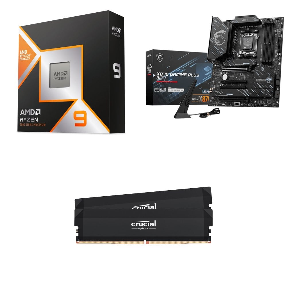☆期間限定★ AMD R9 9950X3D+微星 X870 GAMING PLUS WIFI ATX主機板+美光Crucial PRO DDR5-6000 16G*2黑 記憶體