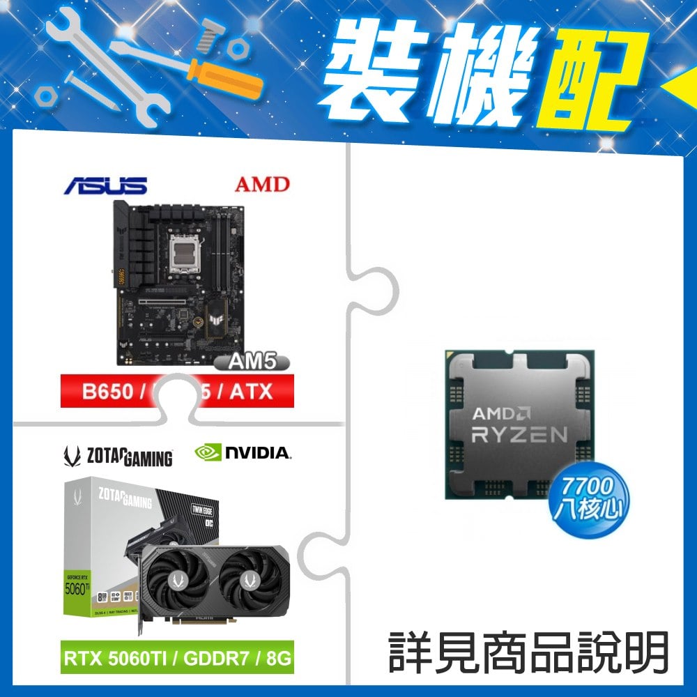 ☆裝機配★ AMD R7 7700 MPK+華碩 TUF GAMING B650-E WIFI ATX主機板+索泰 RTX 5060 TI 8GB Twin Edge OC 顯示卡