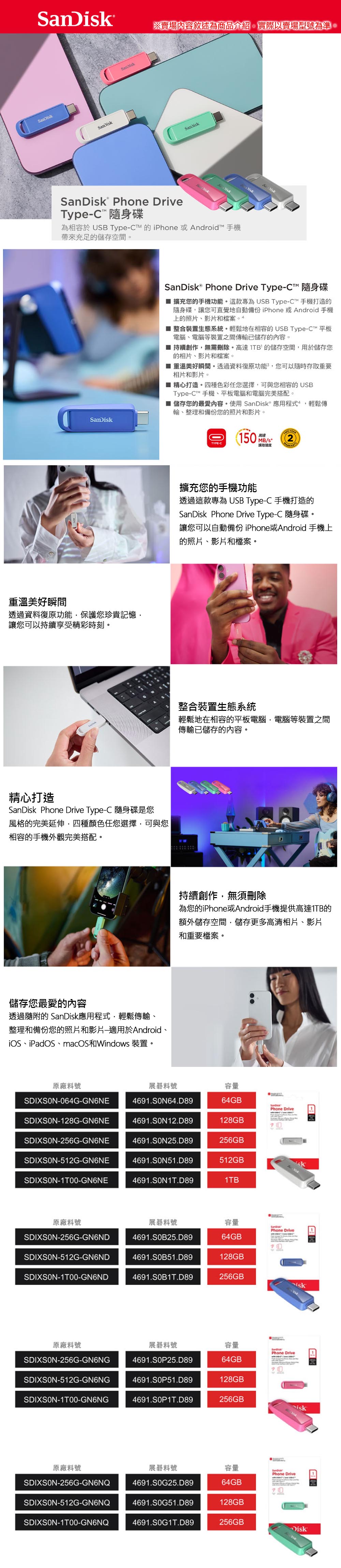 SanDisk Phone Drive 128G 北極白 150M Type-C 隨身碟