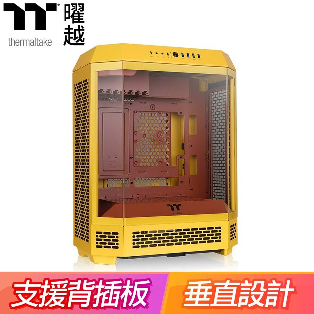 Thermaltake 曜越【The Tower 600】全景直立式 三面玻透 ATX機殼《蜂芒黃》(顯卡40)