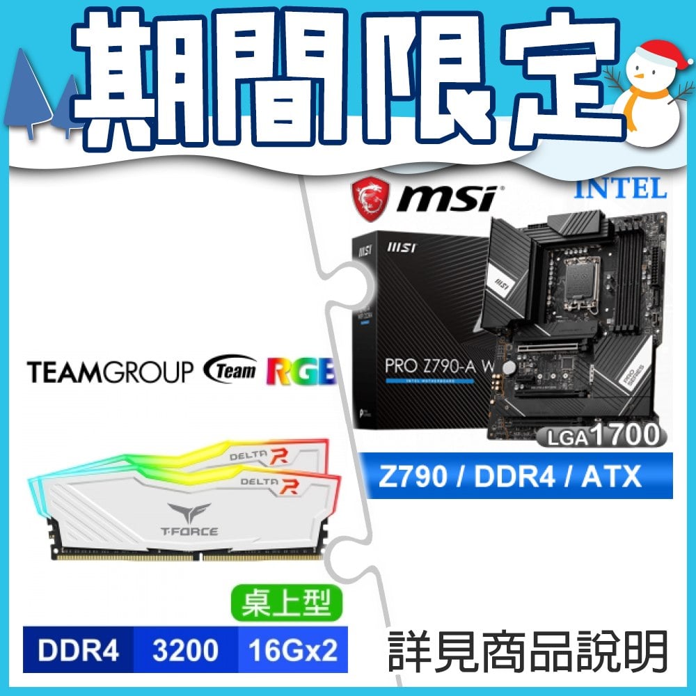 ☆期間限定★ 微星 PRO Z790-A WIFI D4 ATX主機板+十銓 T-Force DELTA RGB D4 3200 16G*2白 記憶體