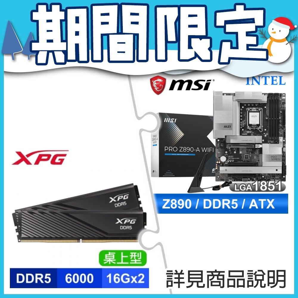 ☆期間限定★ 微星 PRO Z890-A WIFI D5 ATX主機板+威剛 XPG LANCER BLADE DDR5 6000 16G*2 CL30-40-40 黑 電競記憶體