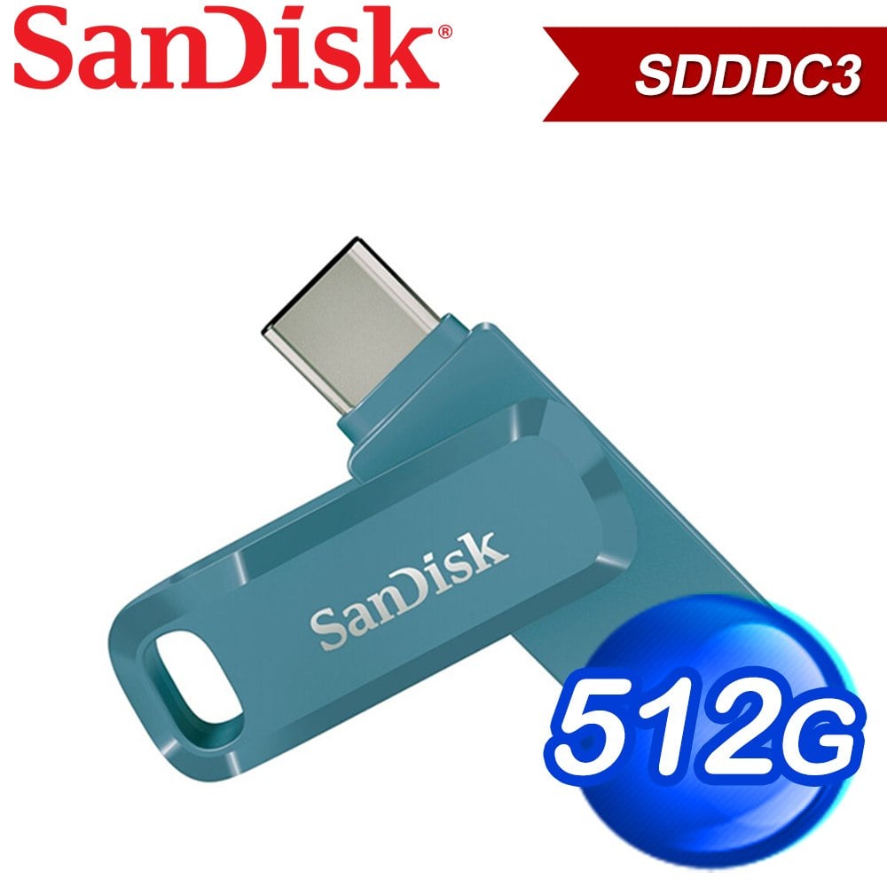SanDisk SDDDC3 Ultra 512G/400M TypeC+A隨身碟《海灣藍》