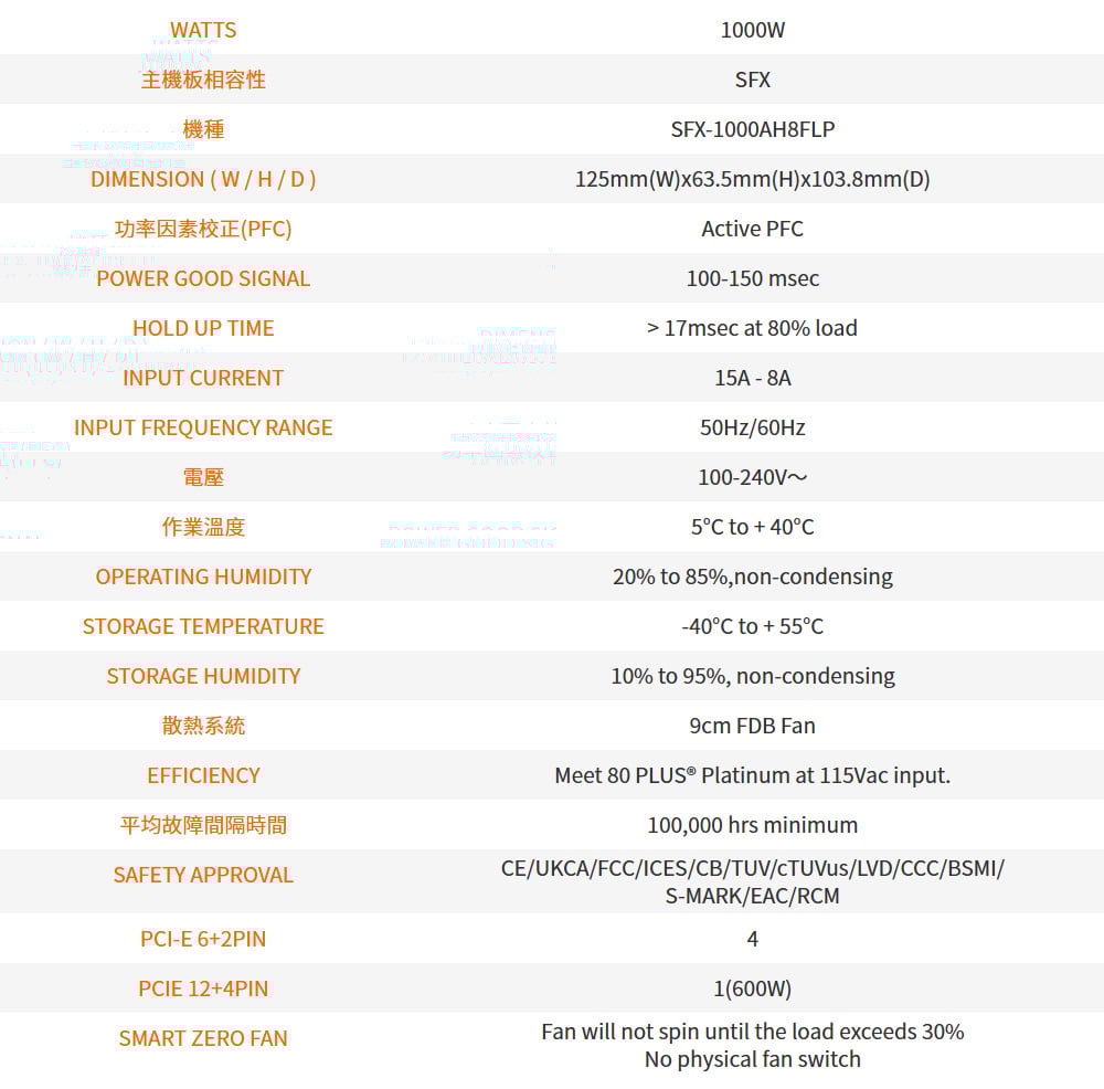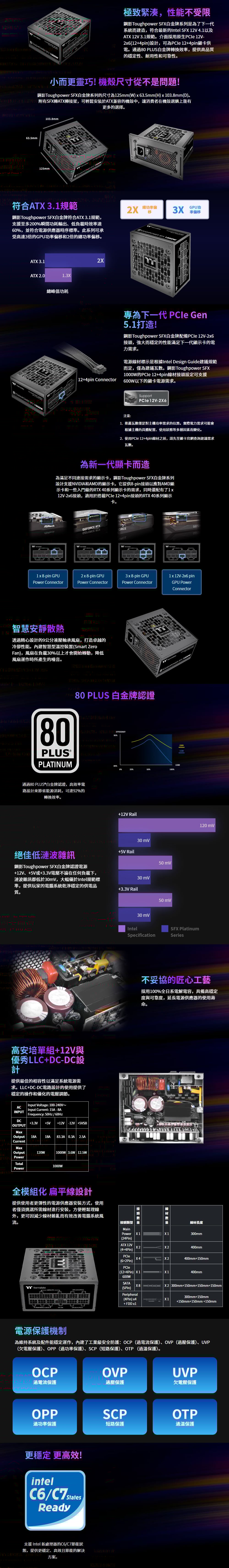 Thermaltake 曜越 Toughpower SFX 1000W 白金牌 全模組 ATX3.1 PCIe 5.0 全日系 雙8 電源供應器(7年保)