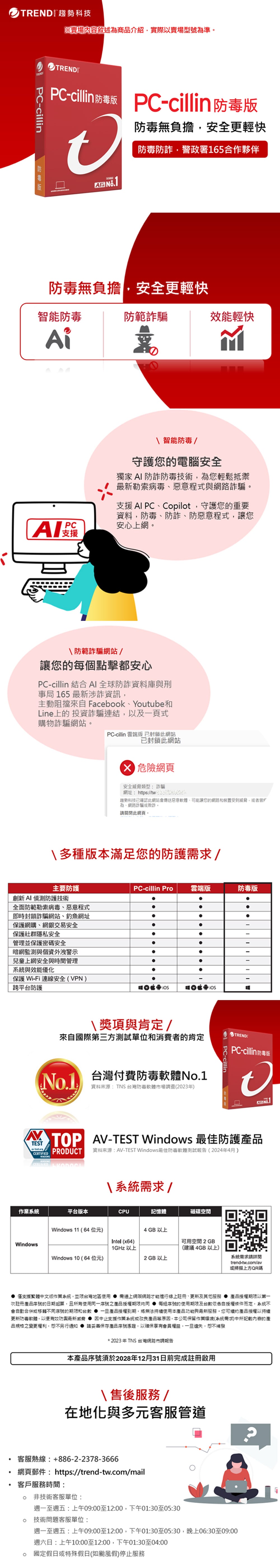 趨勢科技 PC-cillin 防毒版 防毒軟體《三年一台標準盒裝》