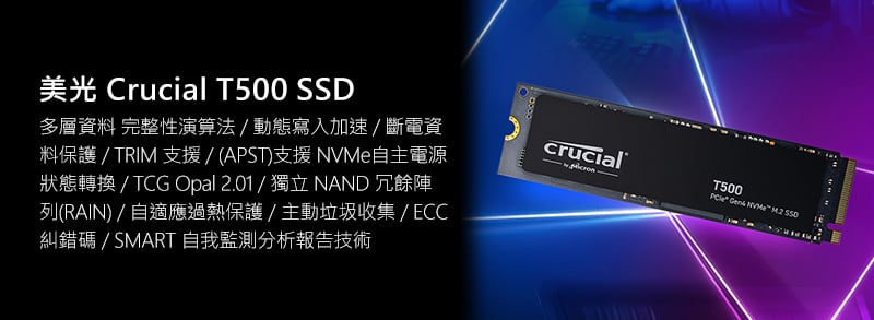 - 固態硬碟:美光 Crucial T500 2TB M.2 PCIe 4.0