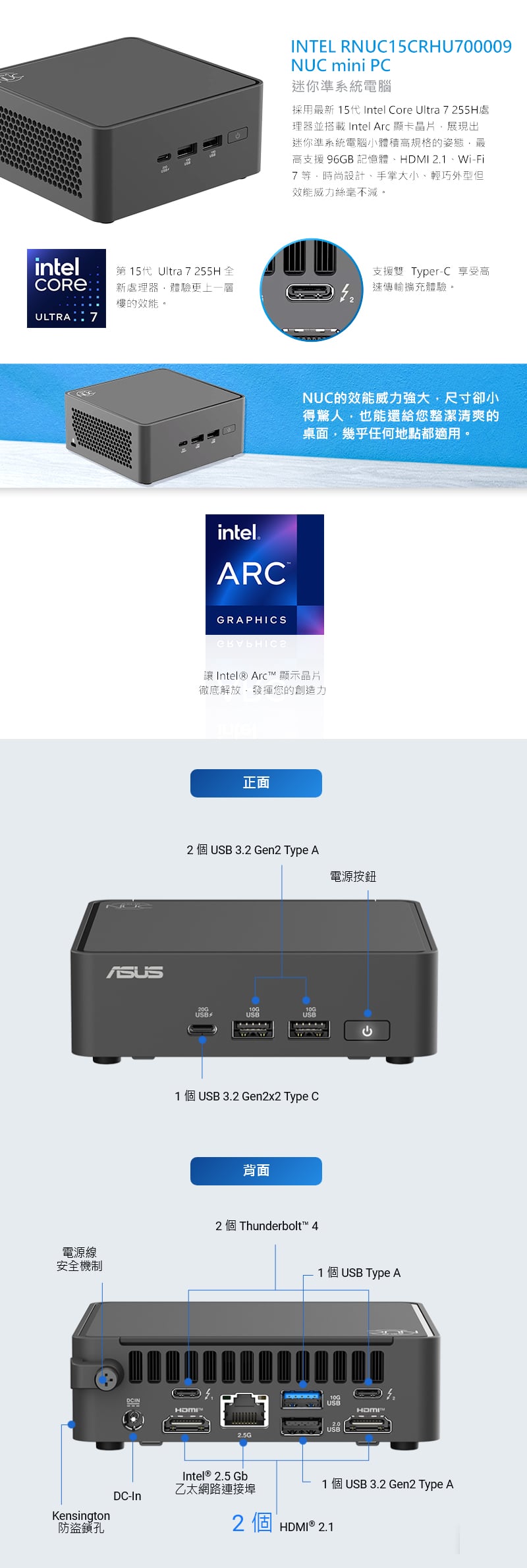 - 準系統:華碩 NUC 15 PRO U7 255H NUC Kit
