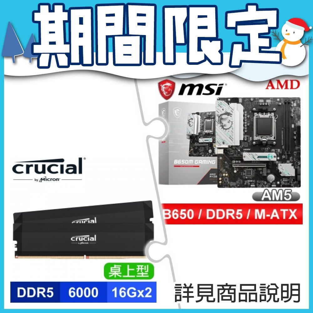 ☆期間限定★ 微星 B650M GAMING WIFI M-ATX主機板+美光Crucial PRO DDR5-6000 16G*2黑 記憶體