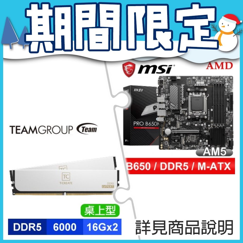☆期間限定★ 微星 PRO B650M-P M-ATX主機板+TEAM 十銓T-CREATE EXPERT DDR5 6000 32G(16G*2) CL30 白 記憶體
