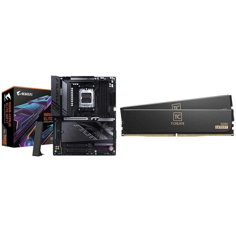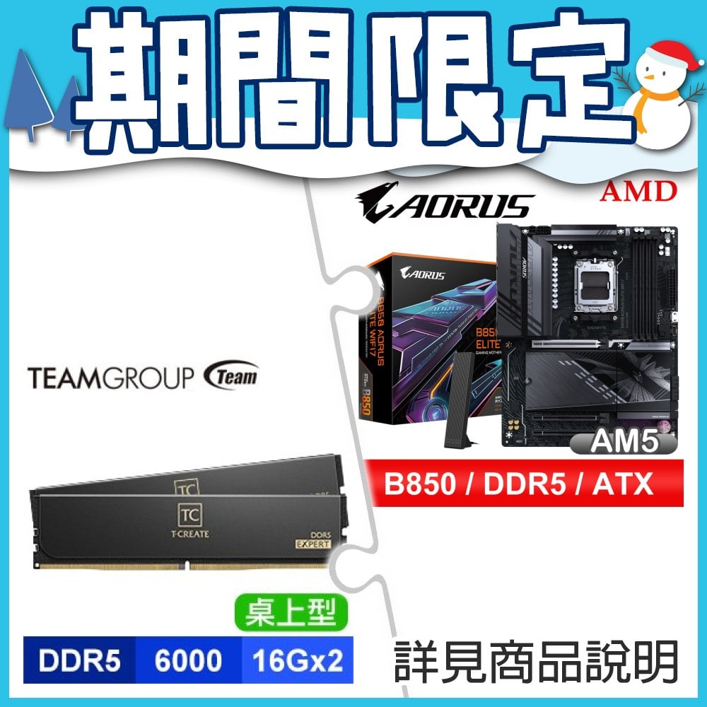 ☆期間限定★ 技嘉 B850 AORUS ELITE WIFI7 ATX主機板+TEAM 十銓T-CREATE EXPERT DDR5 6000 32G(16G*2)CL30 黑 記憶體