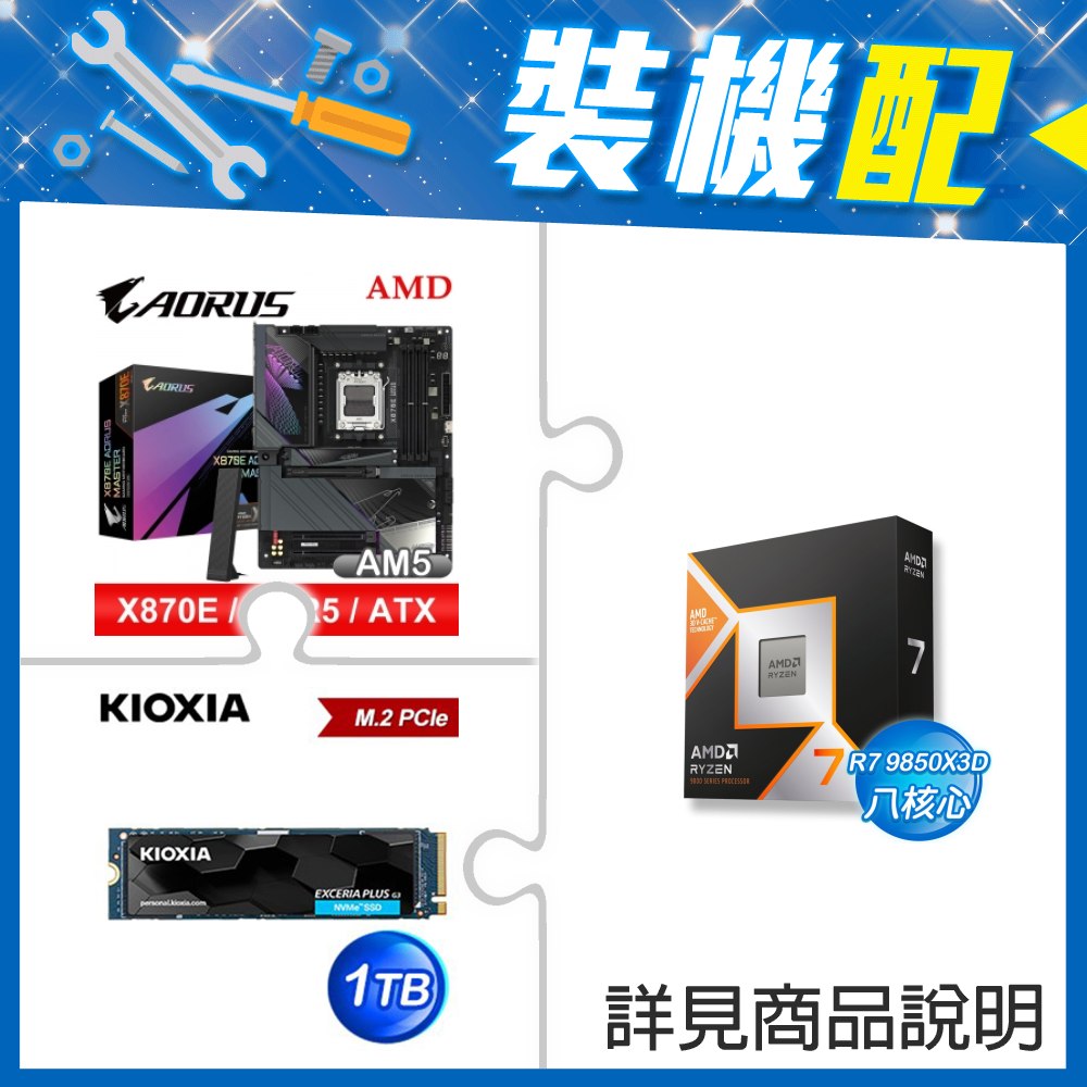 ☆裝機配★ AMD R7 9850X3D+技嘉 X870E AORUS MASTER ATX主機板+鎧俠 EXCERIA PLUS G3 1TB PCIe Gen4x4 SSD
