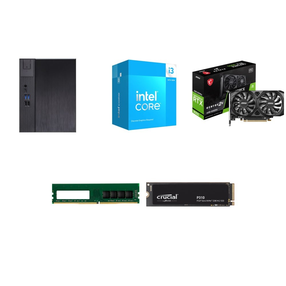 ☆期間限定★ 華擎 DeskMeet B760 INTEL準系統+i3-14100F+微星 RTX 3050 VENTUS 2X E 6G OC 顯示卡+威剛 DDR4-3200 16G 記憶體+美光 Crucial P310 500G Gen4 M.2 SSD BULK