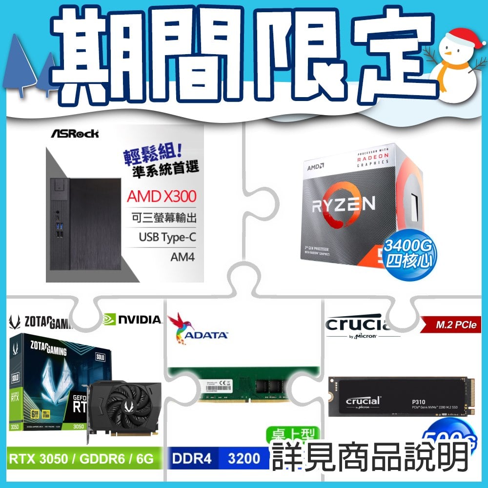 ☆期間限定★ 華擎 DeskMeet X300 AMD準系統+AMD Ryzen 5 3400G SR1+索泰 RTX 3050 6G GDDR6 Solo 顯示卡+威剛 DDR4-3200 16G 記憶體+美光 Crucial P310 500G Gen4 M.2 SSD BULK