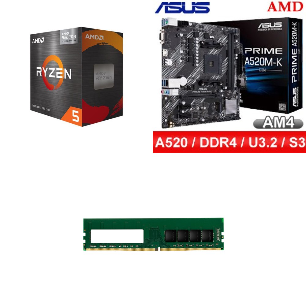 ☆期間限定★ AMD R5 5500GT+華碩 PRIME A520M-K CSM M-ATX主機板+威剛 DDR4-3200 16G 記憶體